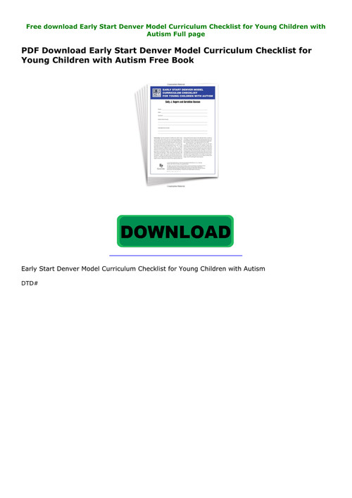 The Early Start Denver Model Curriculum Checklist for Young Children with Autism is used to comprehensively assess the skills of toddlers and preschoolers with autism across multiple developmental domains and to establish individualized teaching objectives. Click Download or Read. Published on February 11 2020.